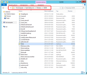 Instalacja i konfiguracja usługi SSJOB w systemie MS Windows 1.Umieszczamy zawartość folderu SSJOB w takiej lokalizacji, aby uniemożliwić usunięcie folderu przez przypadkowego użytkownika. Zalecana lokalizacja