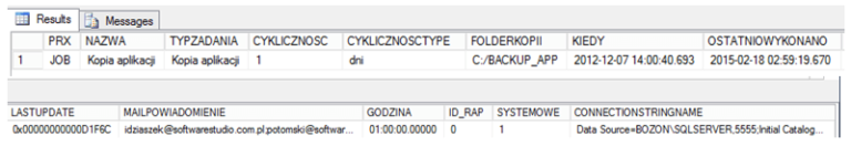 Struktura tabeli odpowiedzialnej za definiowanie automatycznych zadań